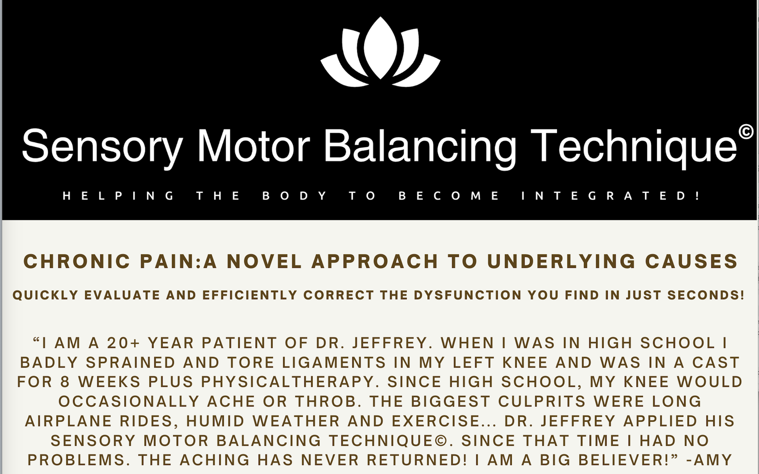 Sensory Motor Balancing Technique©, Robert I. Jeffrey, D.C., L.Ac.